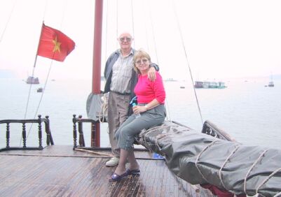 Aboard our ship as it cruises on the Bay to one of the islands with a cave. |