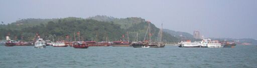 Our ship tied up at the dock on the island where we will go into a cave. |