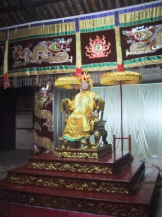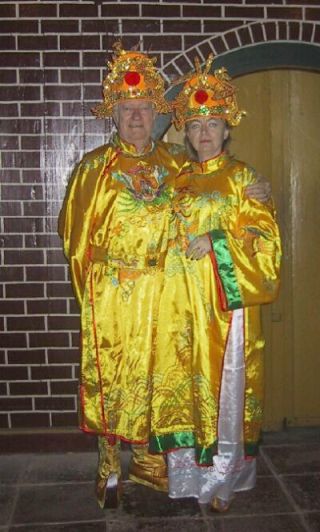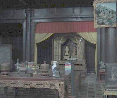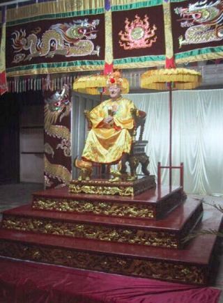 Lester, in robe, sitting on the throne in the rear of the Tu Duc Mausoleum. |