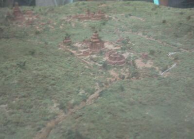 A model of a temple on display in the Cham Museum. |
