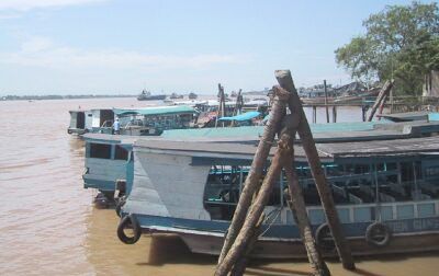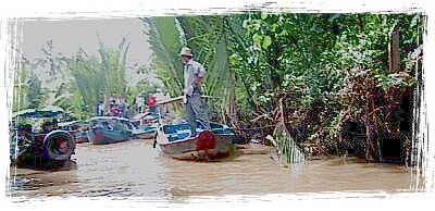 Leaving the harbor at My Tho one of the navigatable Meking Delta river outlets that goes out to sea at the Dai Mouth. |