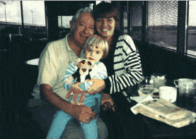 At Cincinnati Airport, Delta lounge, with cousin's (Maria Torgesen) daughter, Monique, while waiting for plane to California