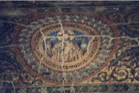 On the left is the Kaiser Wilhelm Gedachtniskirche (Emperor William Memorial Church). The old church was built in 1891-95, and was badly damaged during World War 2. The ruins of the west tower at 207 feet high is all that remains. (I have included several photos of the inside, below.) In 1961, a new church, the flat roof octagon and the hexagonal tower at 174 feet high, were built. They are comically called the "powder-box and lipstick." A carillon installed in the old tower, on the hour, plays a tune composed by Prince Louis Ferdinand. |