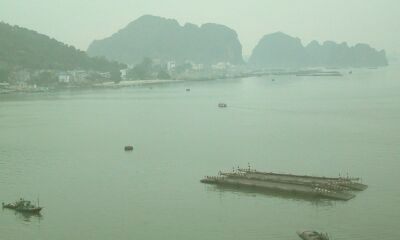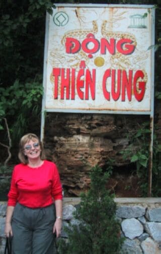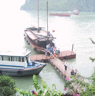 Our ship tied up at the dock on the island where we will go into a cave. |