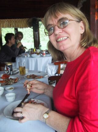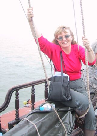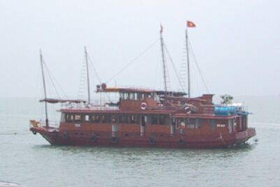 Aboard our ship as it cruises on the Bay to one of the islands with a cave. |