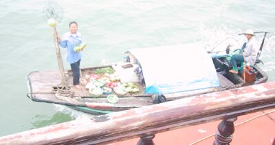 Food & souvenir venders come right up the ship while under way with goods to sell |
