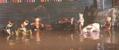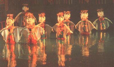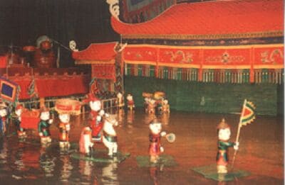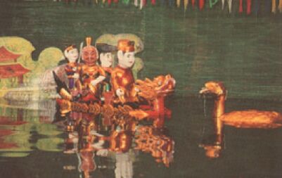 Scene depicting Emperor Le Loi on a boat tour of the legend about "Restored Sword" Lake. |