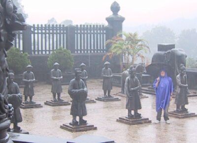 Danuta standing among the statues in the Emporer Khai Dinh's Mausoleum |