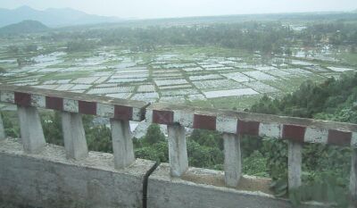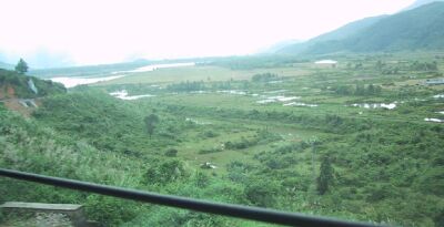 We stop at the top of the Hai Van Pass for a view toward Danang. Here you can see the Hai Van Trail. |