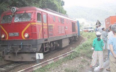Bus was stopped at rail crossing for this train that goes from Saigon north to Hanoi. |