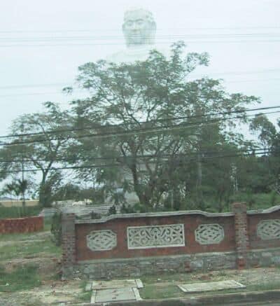 The head sticking out on tope of the trees is part of a really giant Buddha statue. |