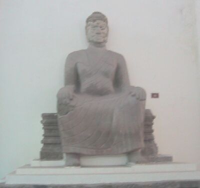 We visit the Cham Sculpture Museum in Danang and view the many objects, here a statue made of sandstone. |