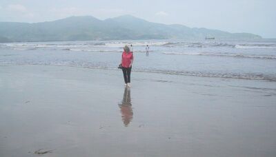 Danuta wading in the water at "China Beach." |