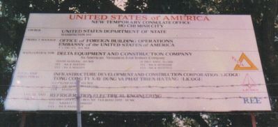 Sign stating that the new temporary U.S. Consulate is located here now. |